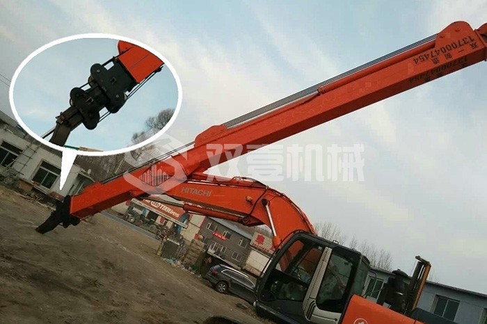 超長(zhǎng)四節(jié)臂:總長(zhǎng)度可達(dá)48米,臂內(nèi)可再伸出3節(jié),施工深度42.5米,配帶貝殼斗1.8立方或挖掘斗1.0立方。
