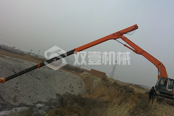超長四節(jié)臂:總長度可達48米,臂內可再伸出3節(jié),施工深度42.5米,配帶貝殼斗1.8立方或挖掘斗1.0立方。