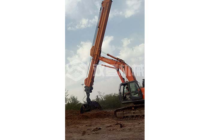 超長(zhǎng)四節(jié)臂:總長(zhǎng)度可達(dá)48米,臂內(nèi)可再伸出3節(jié),施工深度42.5米,配帶貝殼斗1.8立方或挖掘斗1.0立方。