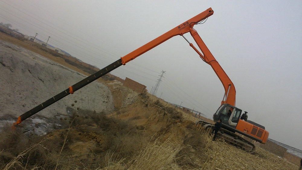 我公司生產(chǎn)的挖掘機(jī)加長(zhǎng)臂利用超長(zhǎng)型動(dòng)臂和超長(zhǎng)型斗桿,可在疏浚、護(hù)岸、坡面以及地鐵建設(shè)等受地面環(huán)境限制的工況下發(fā)揮巨大的威力。我們的技術(shù)人員任職于挖掘機(jī)械行業(yè)十余年,有豐富的制造經(jīng)驗(yàn)。采用先進(jìn)的電腦2D、3D輔助設(shè)計(jì)系統(tǒng)設(shè)計(jì),并經(jīng)過(guò)設(shè)計(jì)系統(tǒng)進(jìn)行挖掘機(jī)實(shí)際動(dòng)作模擬,確保產(chǎn)品的準(zhǔn)確性及可靠性,通過(guò)各類加工設(shè)備,熟練員工技能和實(shí)際應(yīng)用知識(shí)和經(jīng)驗(yàn),從應(yīng)力分析、材質(zhì)選擇、技術(shù)和工藝、設(shè)計(jì)制作等方面保證了挖掘機(jī)加長(zhǎng)大小臂的結(jié)構(gòu)強(qiáng)度、使用性能和質(zhì)量。 挖掘機(jī)加長(zhǎng)臂主要適用于土砂、混凝土等建筑搬運(yùn)、高速公路坡面修整及河道疏通清淤工程及較深的建筑基礎(chǔ)、河道、深溝等土石方挖掘作業(yè),通過(guò)在原挖掘機(jī)的基礎(chǔ)上安裝挖掘機(jī)加長(zhǎng)臂,能完成標(biāo)準(zhǔn)臂無(wú)法達(dá)到的距離,使挖掘機(jī)最大限度的發(fā)揮其用途,廣泛作業(yè)于各種施工現(xiàn)場(chǎng),使效率和安全性更高。